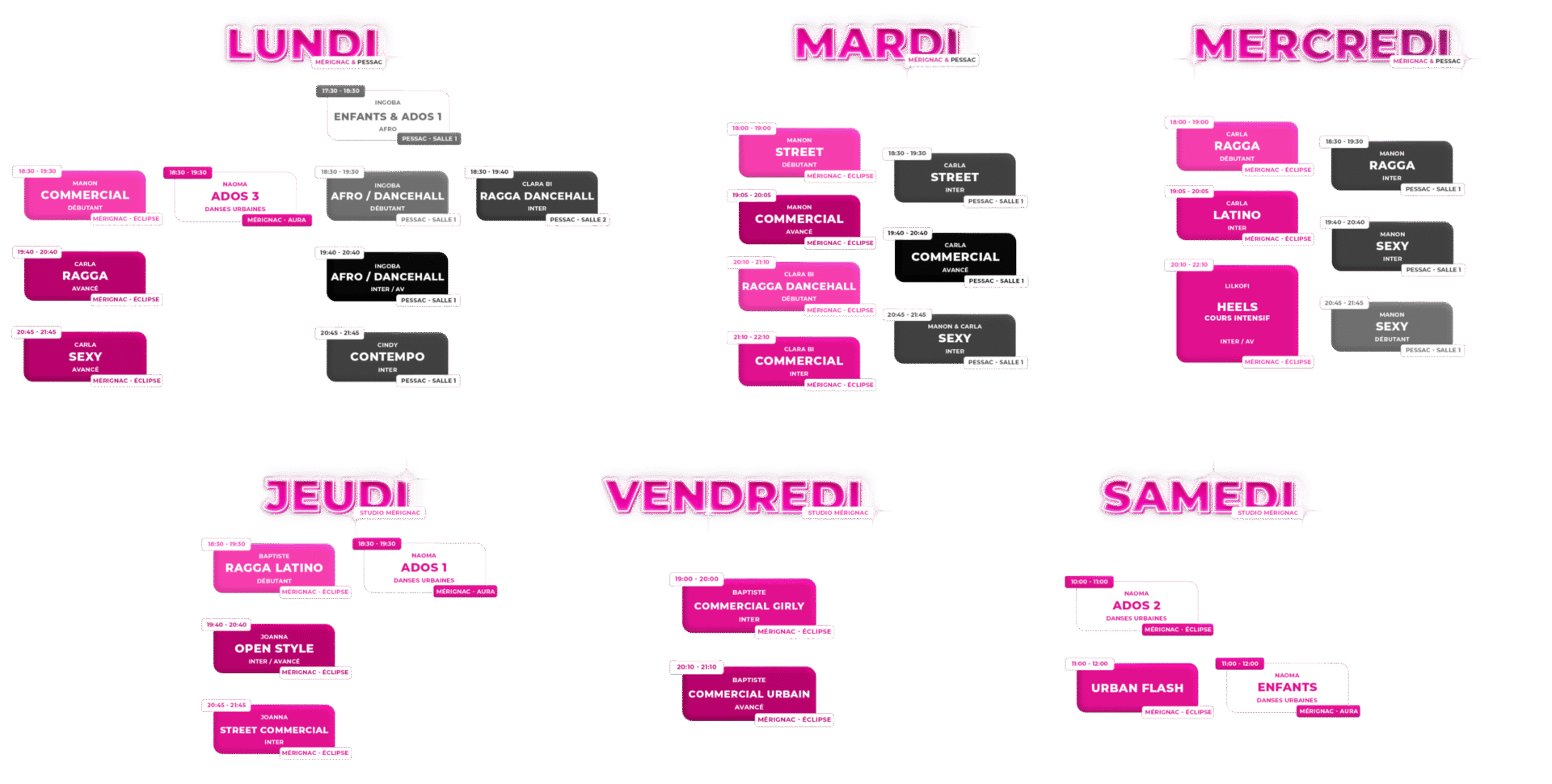 LE PLANNING2025 -2026RÉSERVER UN COURS LE PLANNING2025 -2026RÉSERVER UN COURSBientôt disponible!Encore un peu de patience